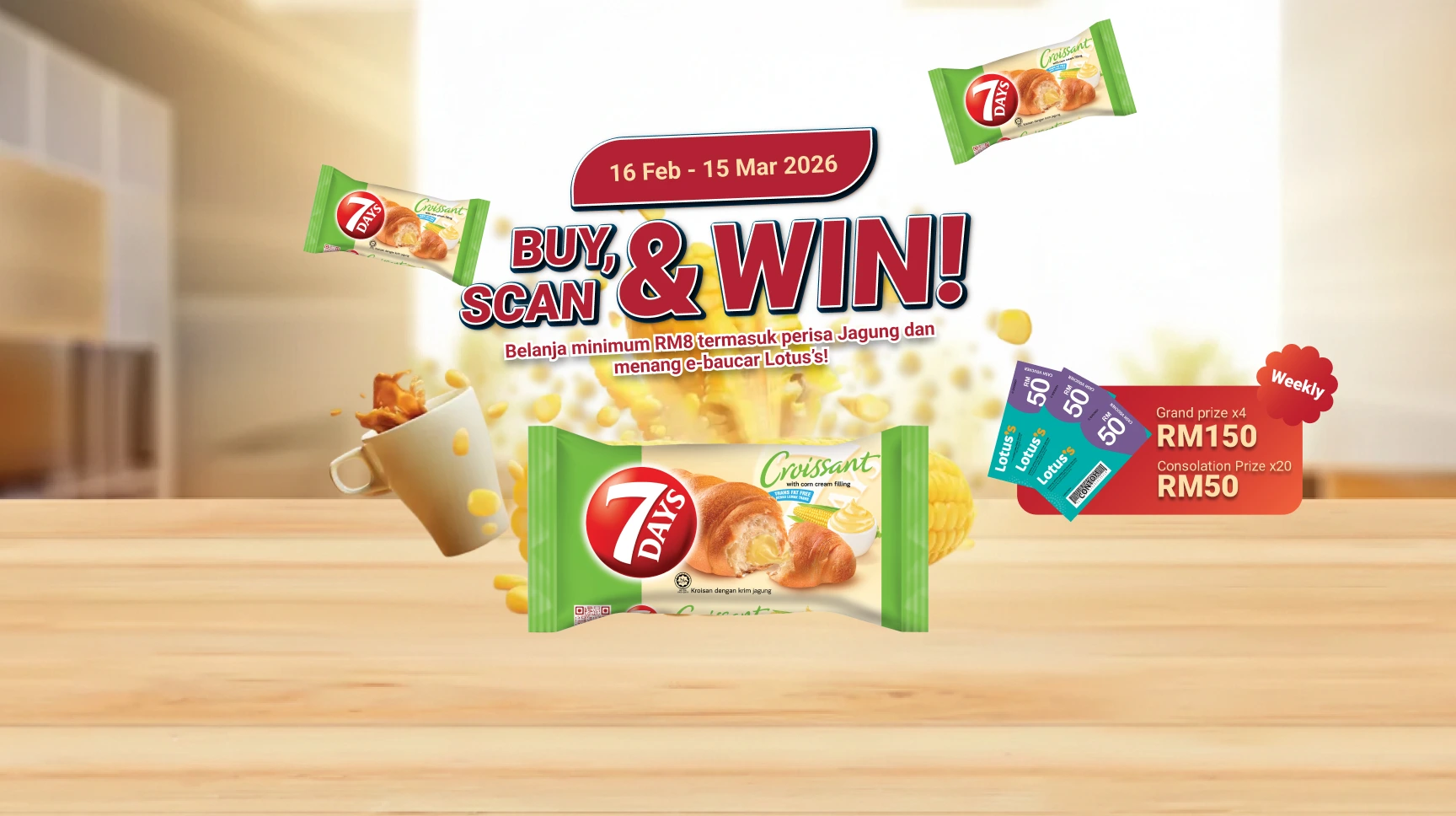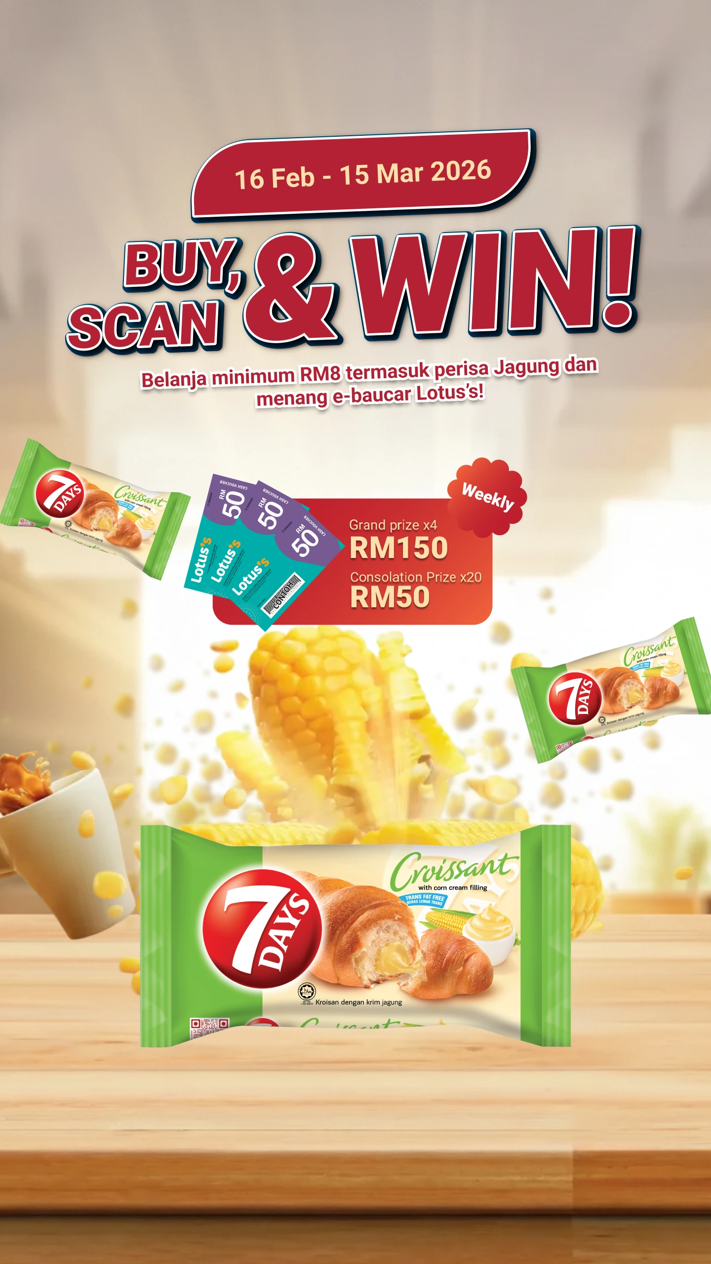 Sempena kembalinya 7DAYS perisa Jagung, kami bawakan peraduan istimewa ekslusif untuk pelanggan Lotus’s.